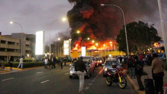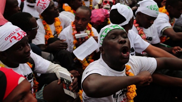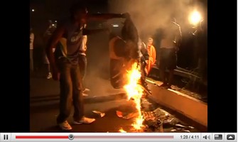 Manifestations anticipatives à la proclamation officielle des résultats...Feu de Joie en l'honneur de la fin du PDG. Les manifestants ainsi que tous les candidats du changement passent la soirée devant le siège de la CENAP, en attendant les r (...)