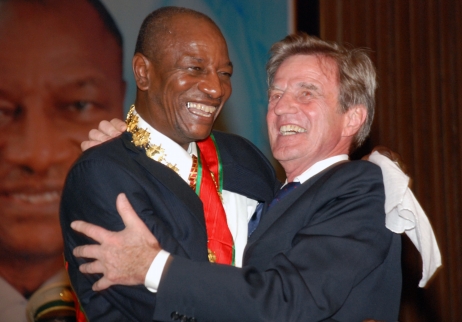 Le chef de la junte guinéenne, le capitaine Moussa Dadis Camara, signe un accord de sortie de crise, le 15 janvier 2010 à Ouagadougou. Un accord de sortie de crise en Guinée a été signé vendredi à Ouagadougou, prévoyant un maintien "en convalescence" (...)