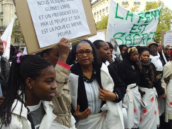 Manifestation pacifique à l'initiative des femmes de la communauté guinéenne française et des forces en protestation aux viols commis sur des femmes lors de la repression de la junte militaire le 28 septembre dernier en Guinéehttp://www.tamtamgui (...)