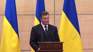 Le président déchu Viktor Ianoukovitch a affirmé le 11 mars 2014 qu'il était toujours "le président légitime de l'Ukraine" et assuré qu'il rentrerait bientôt à Kiev, dans une courte déclaration devant des journalistes à Rostov-sur-le Don, en Russie. (...)