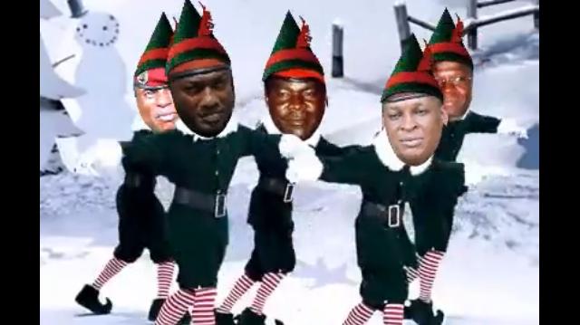 Parodie des membres du gouvernement guinéen. Les personnes figurants sont: -Dadis -Sekouba Konate -Claude Pivi -Cece Loua -Toumba Diakite (...)